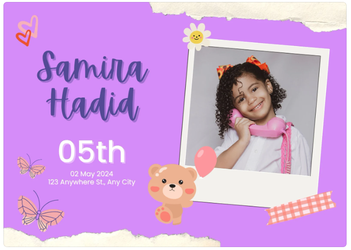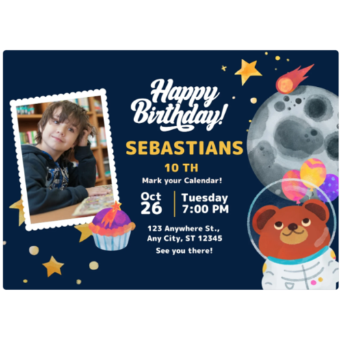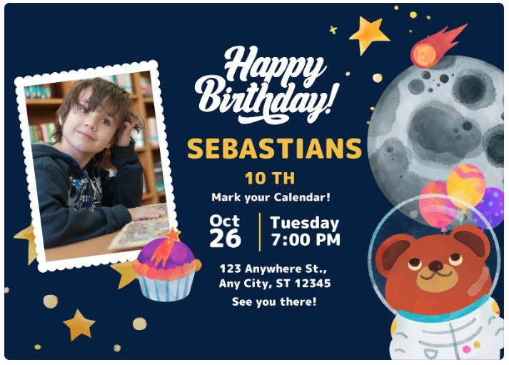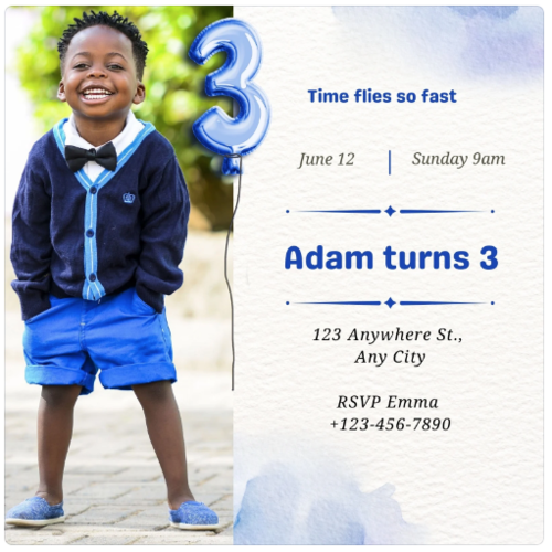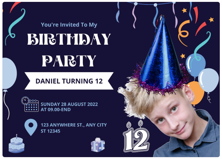 You can choose an invitation that includes a photo and send a photo of the birthday child over via email to hello@funkidsentertainers.co.uk or via What's App on 07775 771888. You can also choose a design that doe's not include a photo or request that we do not include a photo.